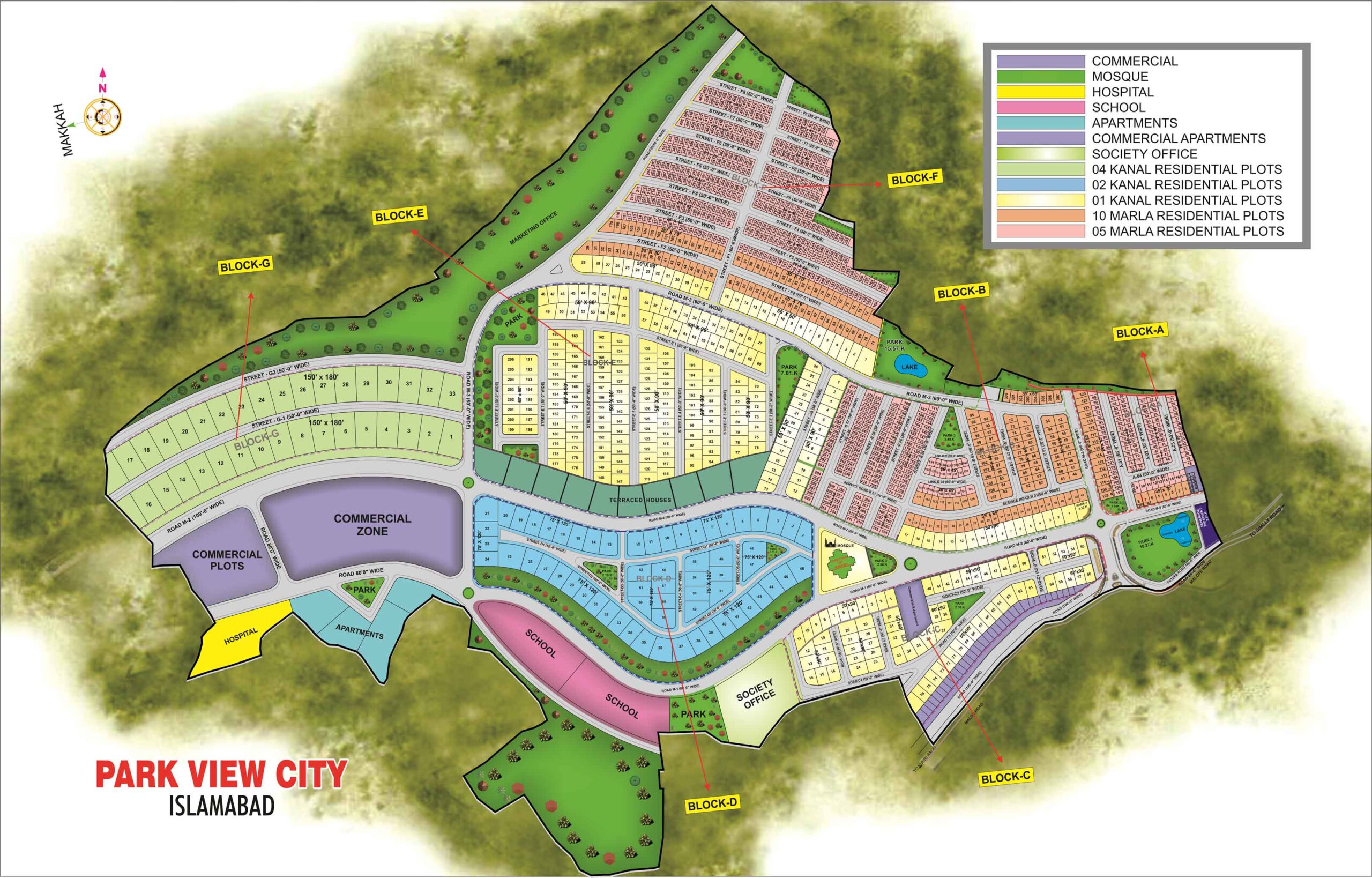 The master plan of Park View City Islamabad is well-designed and modern. It includes: